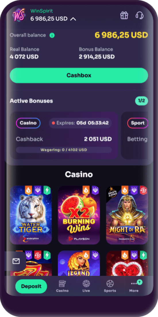 The platform’s users have the option to have access to Winspirit online casino via the application. It is available for Android, iOS and PC. You can download it only from the official website.